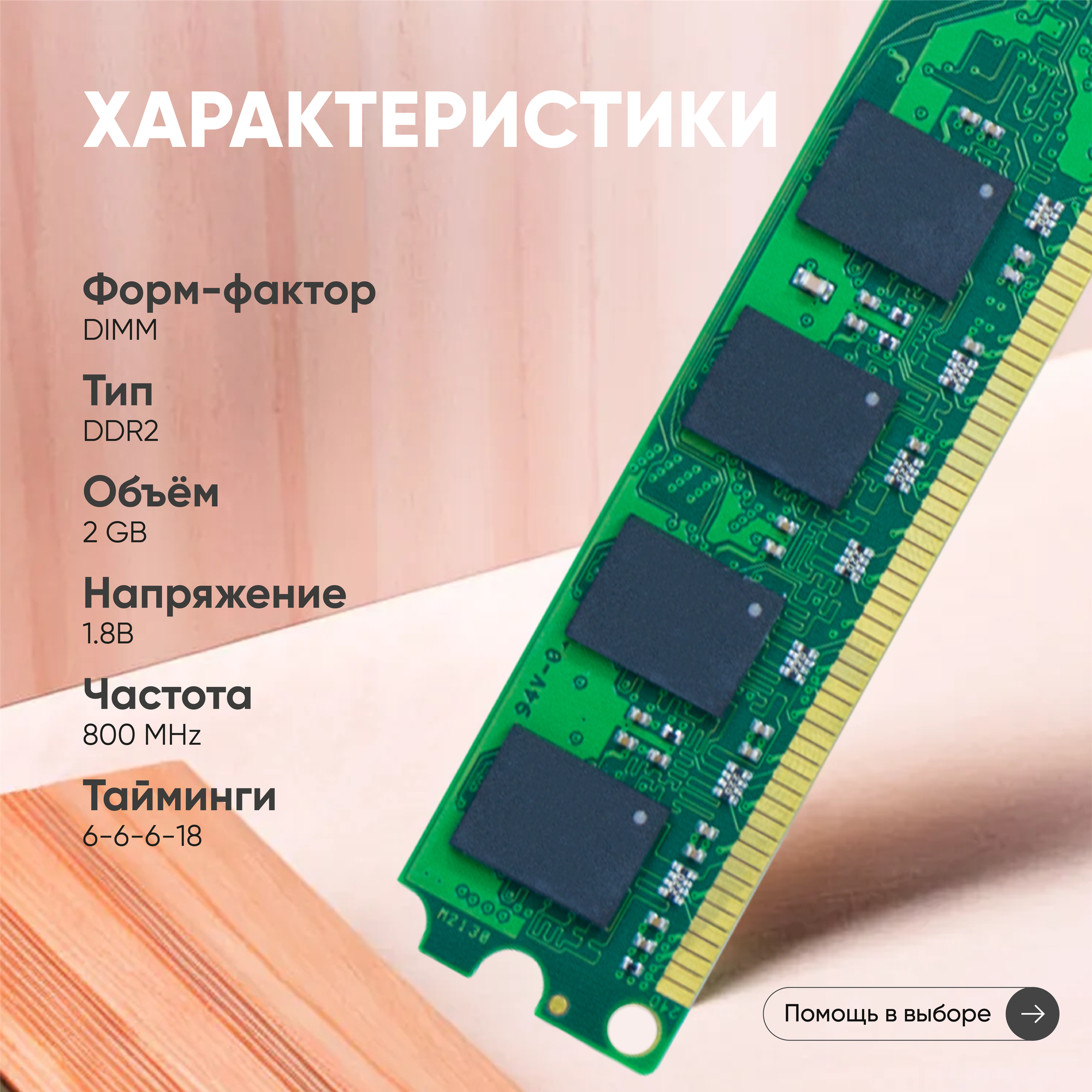 Оперативная память Модуль памяти Kingston DIMM DDR2, 2ГБ, 800МГц, PC2-6400, CL6 6-6-6-18