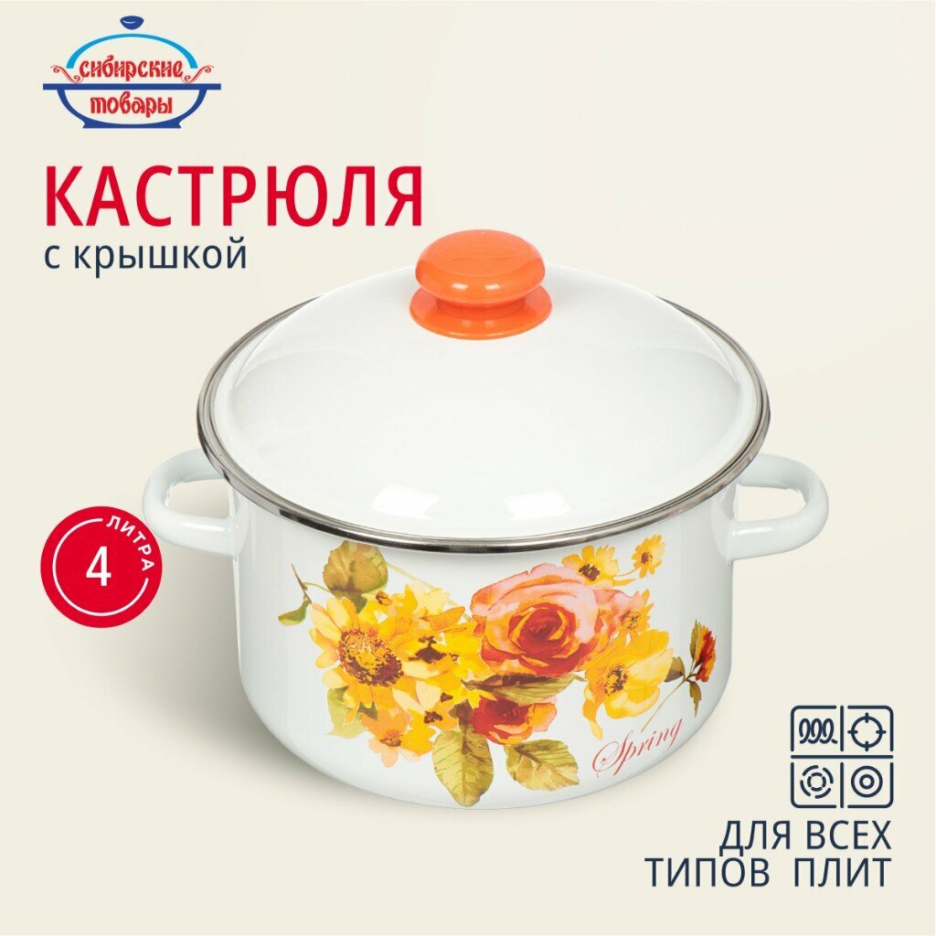 Кастрюля Кастрюля эмалированная сталь, 4 л, с крышкой, крышка сталь, Сибирские товары, Весна, 1MD201M, индукция