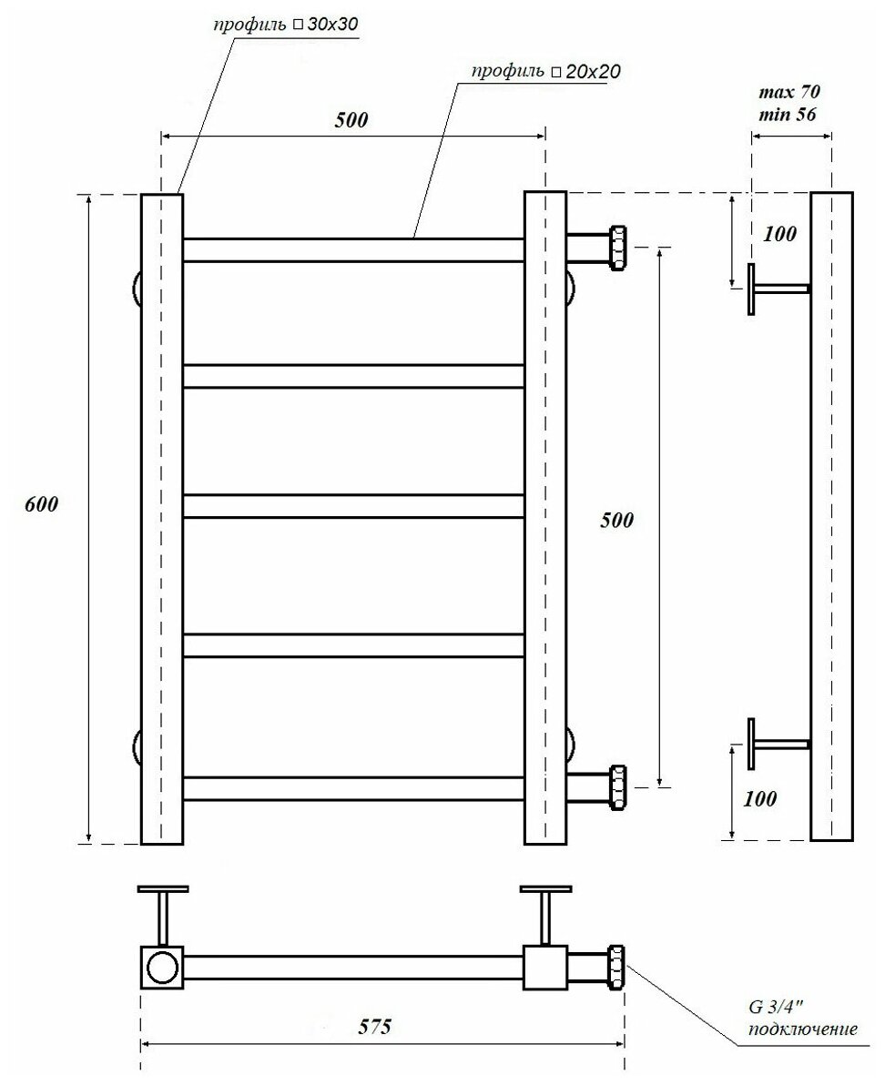 Полотенцесушители Полотенцесушитель водяной 500x600 POINT Вега (PN71556 П5)