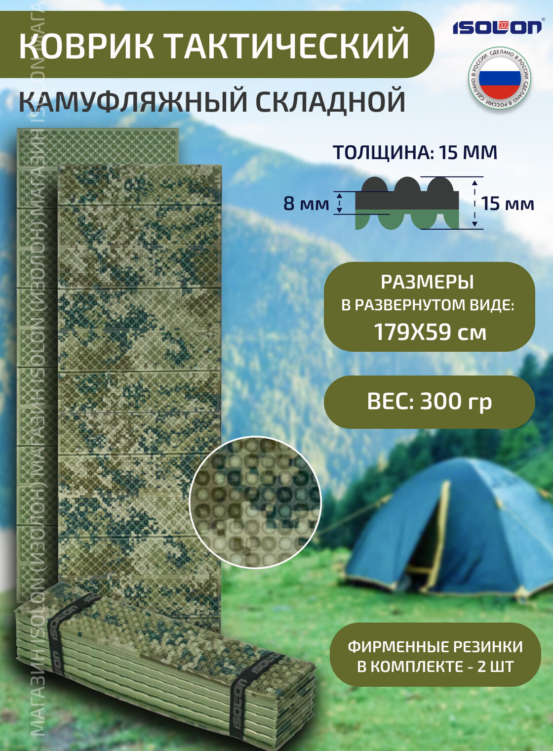 Коврик для туризма и отдыха Isolon Decor Камуфляж 8 мм, 180х55 см хаки 602 ₽ Подробнее