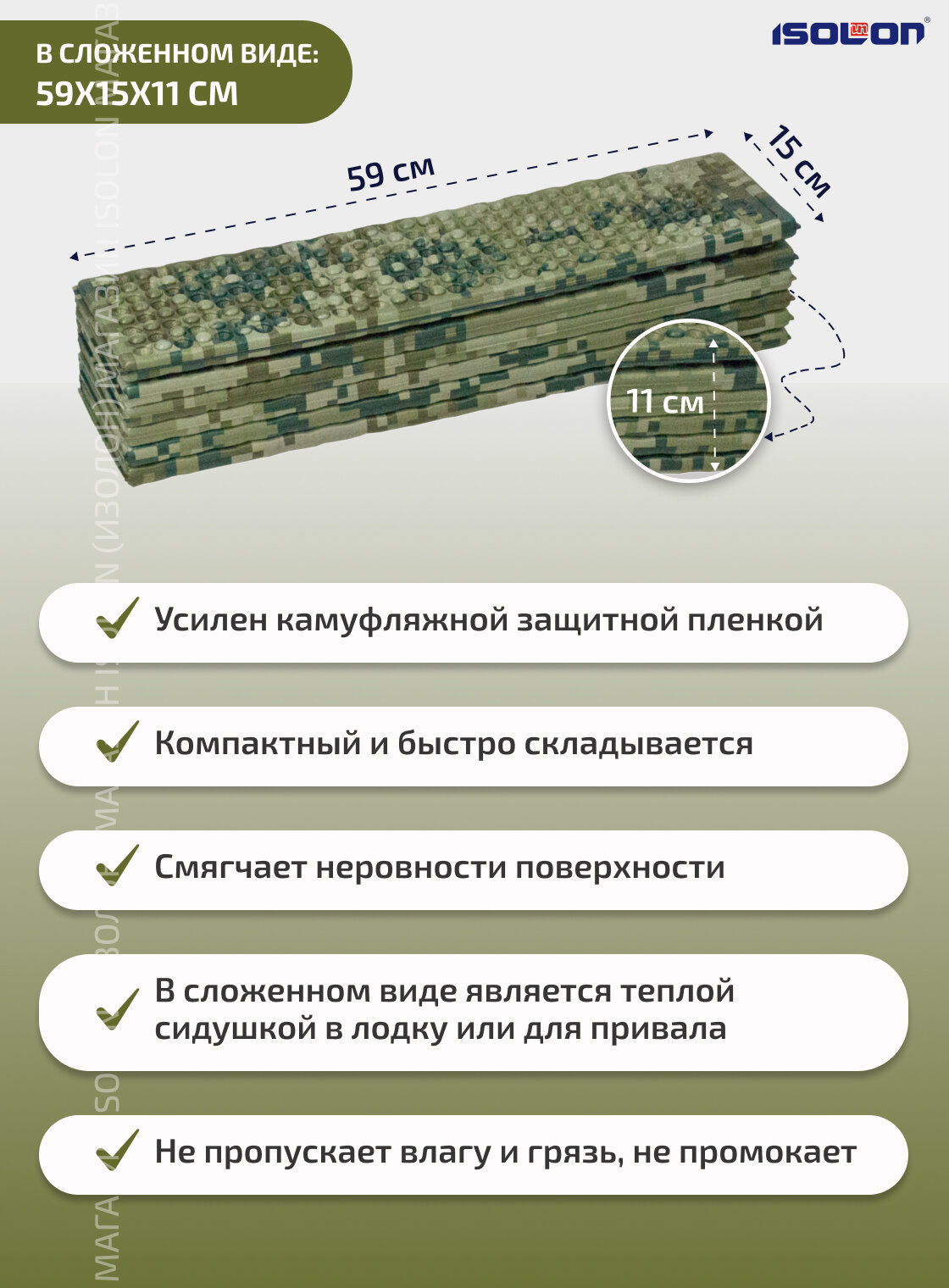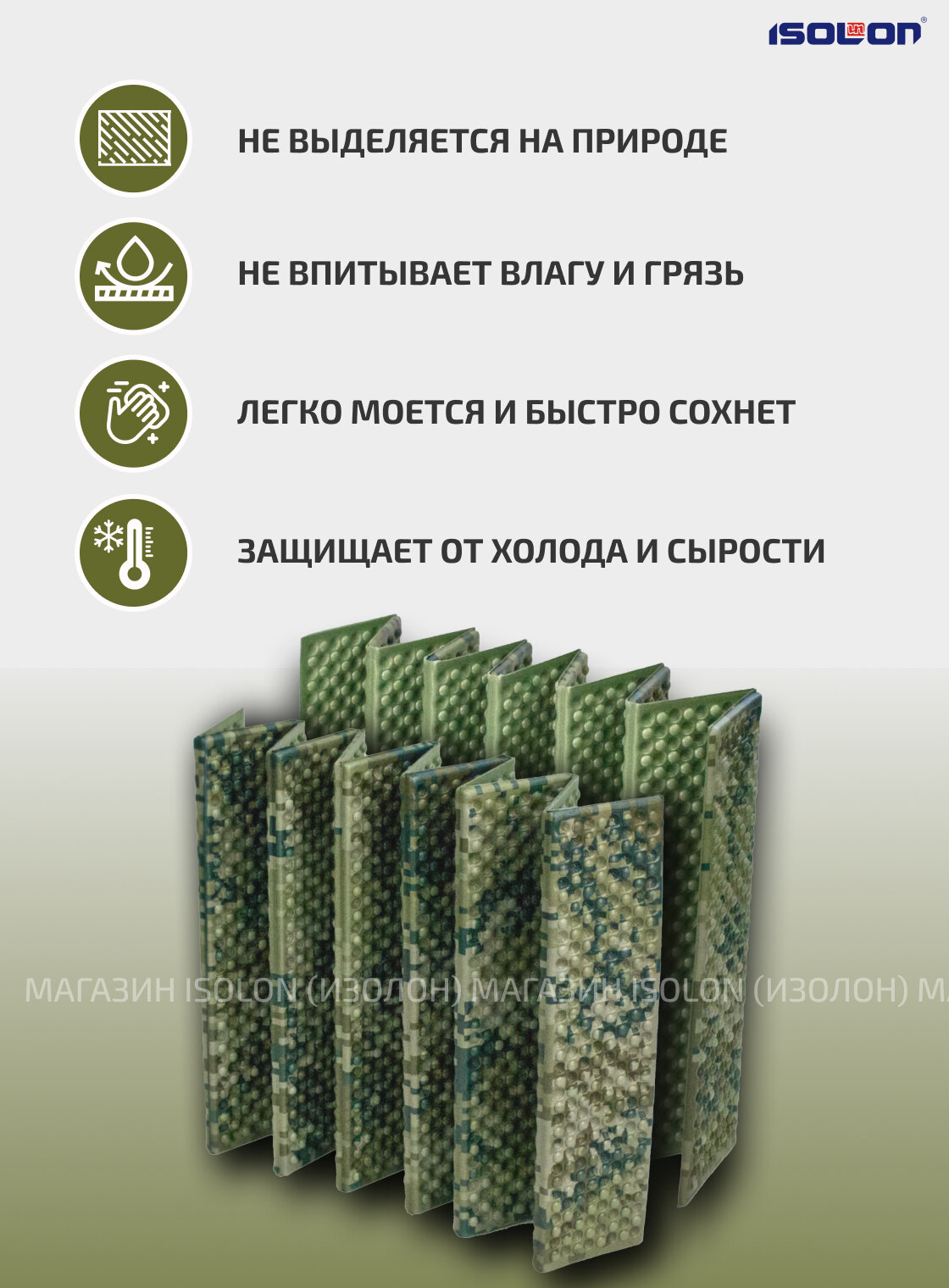 Коврик плотный складной туристический ISOLON Tourist Flex 179 х 59 х 1.5 см хаки, серый 840 ₽ Подробнее