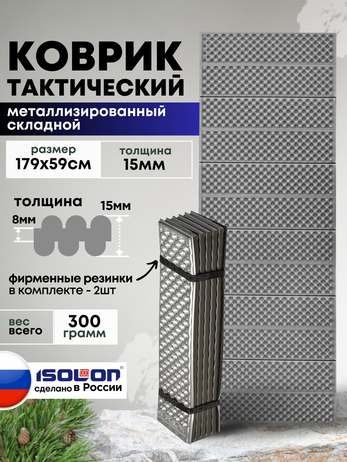 Коврик плотный складной туристический ISOLON Tourist Flex 179 х 59 х 1.5 см хаки, серый 840 ₽ Подробнее