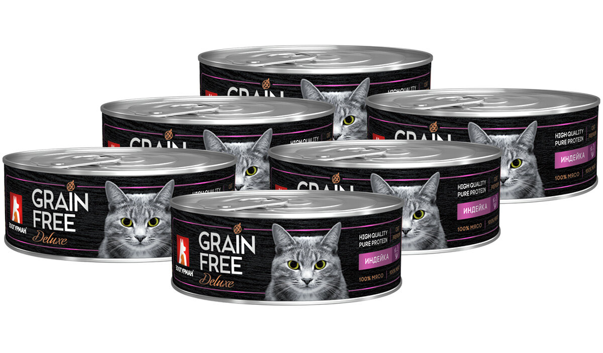Корм для кошек Зоогурман GRAIN FREE DELUXE беззерновые для взрослых кошек с индейкой банка 100 грNEW 100 гр х 6 шт