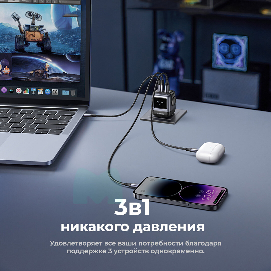 Универсальное зарядное устройство Ugreen GAN 65w Nexode ROBOT, 2 Type-C и 1 USB вход. Быстрая зарядка для телефона, ноутбука, планшета. 5 429 ₽ Подробнее