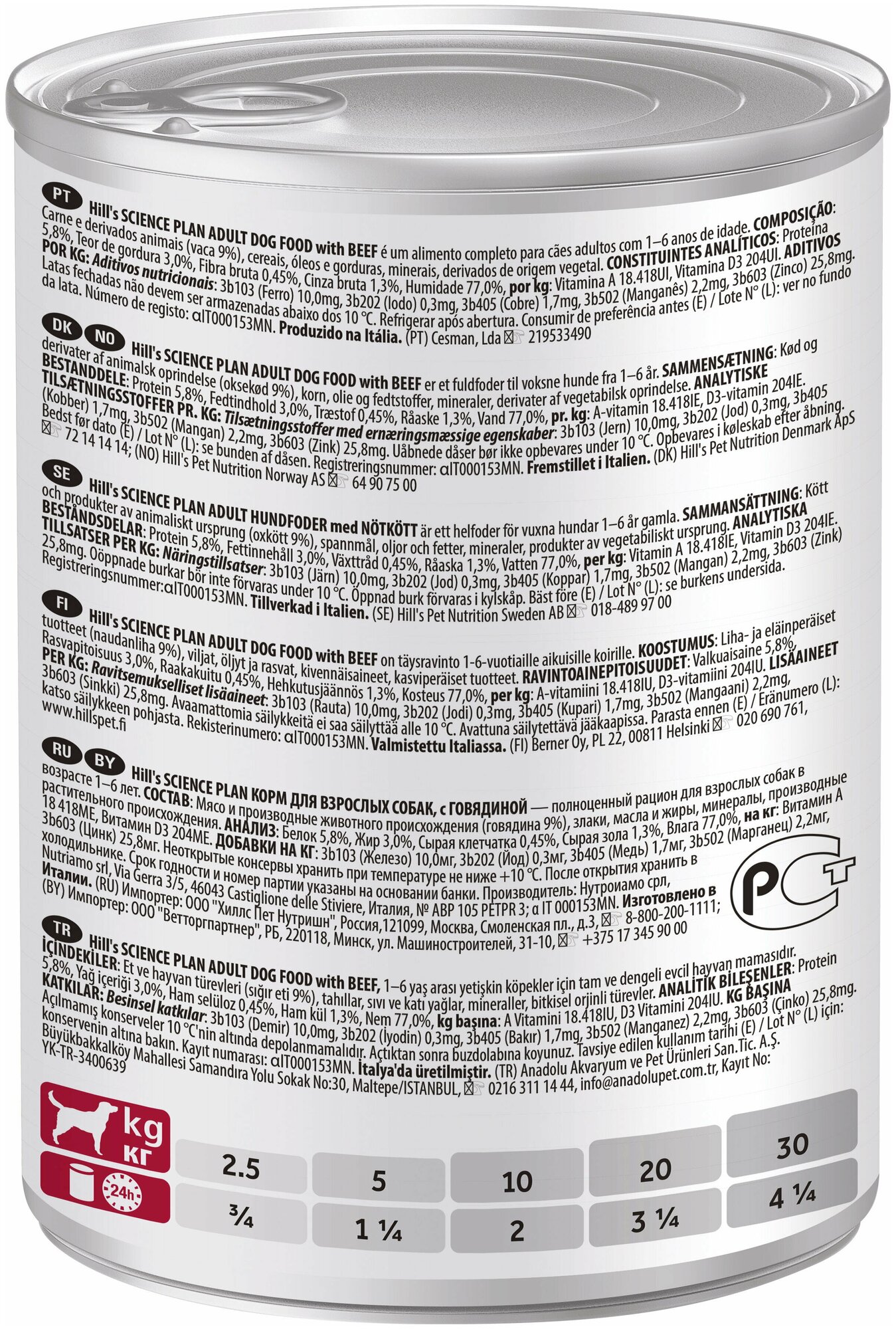 Корм для собак (цена за упаковку) 370г x 12шт консервы хиллс для взрослых собак говядина