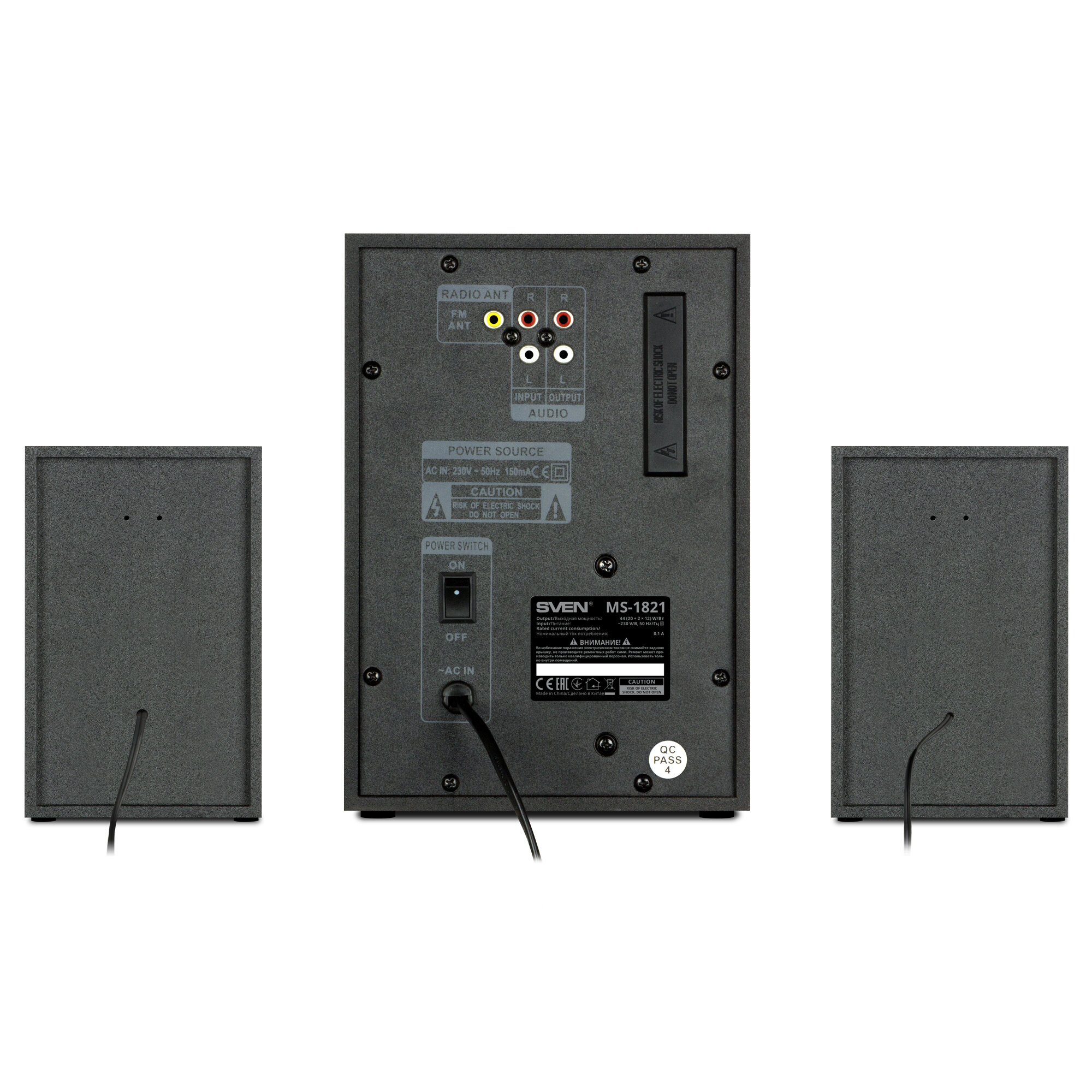 SVEN MS-1821 чёрный, 2.1, мощность(RMS):20Вт+2х12 Вт, Bluetooth, FM-тюнер, USB/SD, дисплей, пульт ДУ)