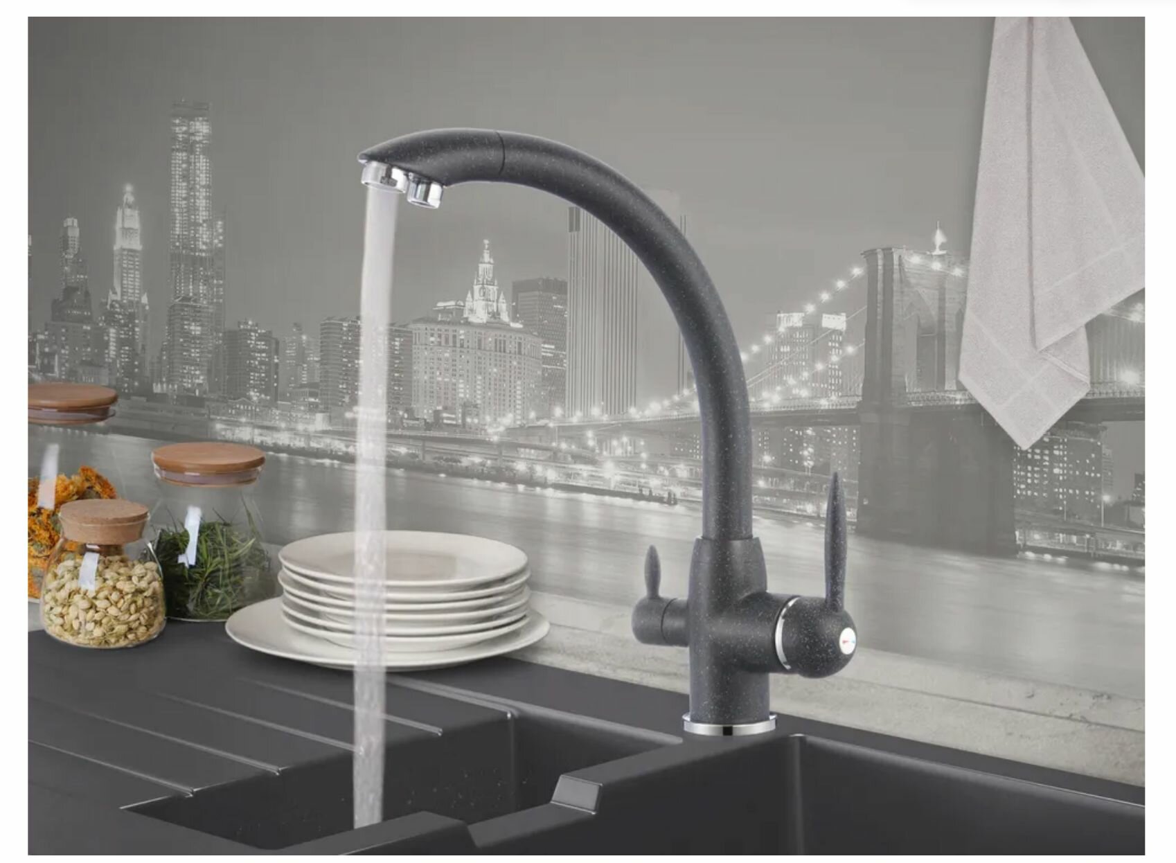 Смесители Смеситель для кухонной мойки под фильтр Savol черный мрамор S-L1699H