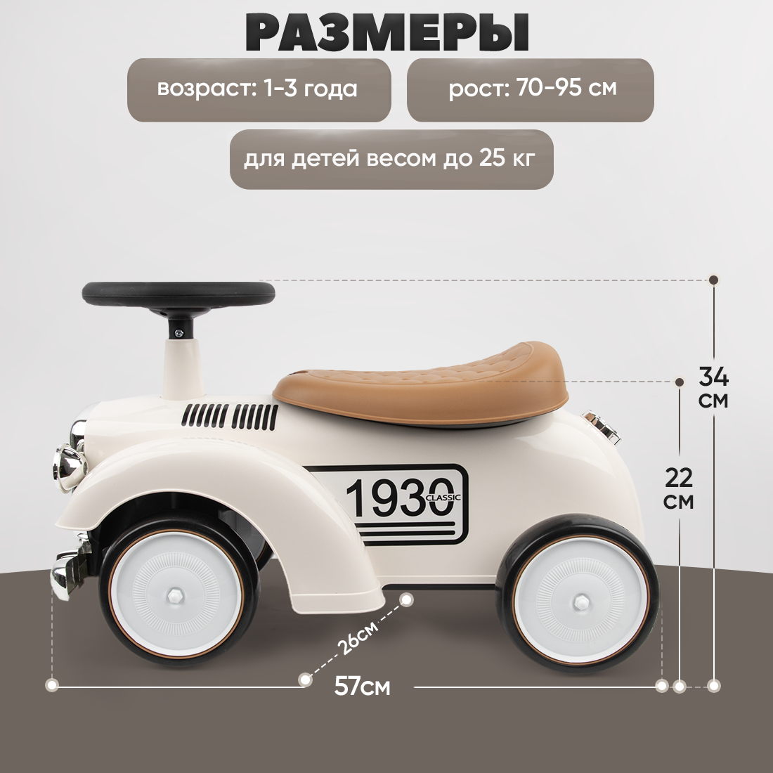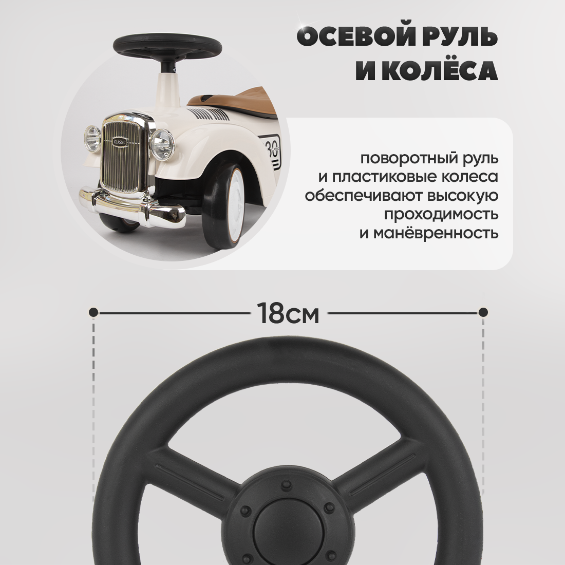 | Оснащение | упоры от переворачивания / багажник / клаксон / звуковые эффекты |