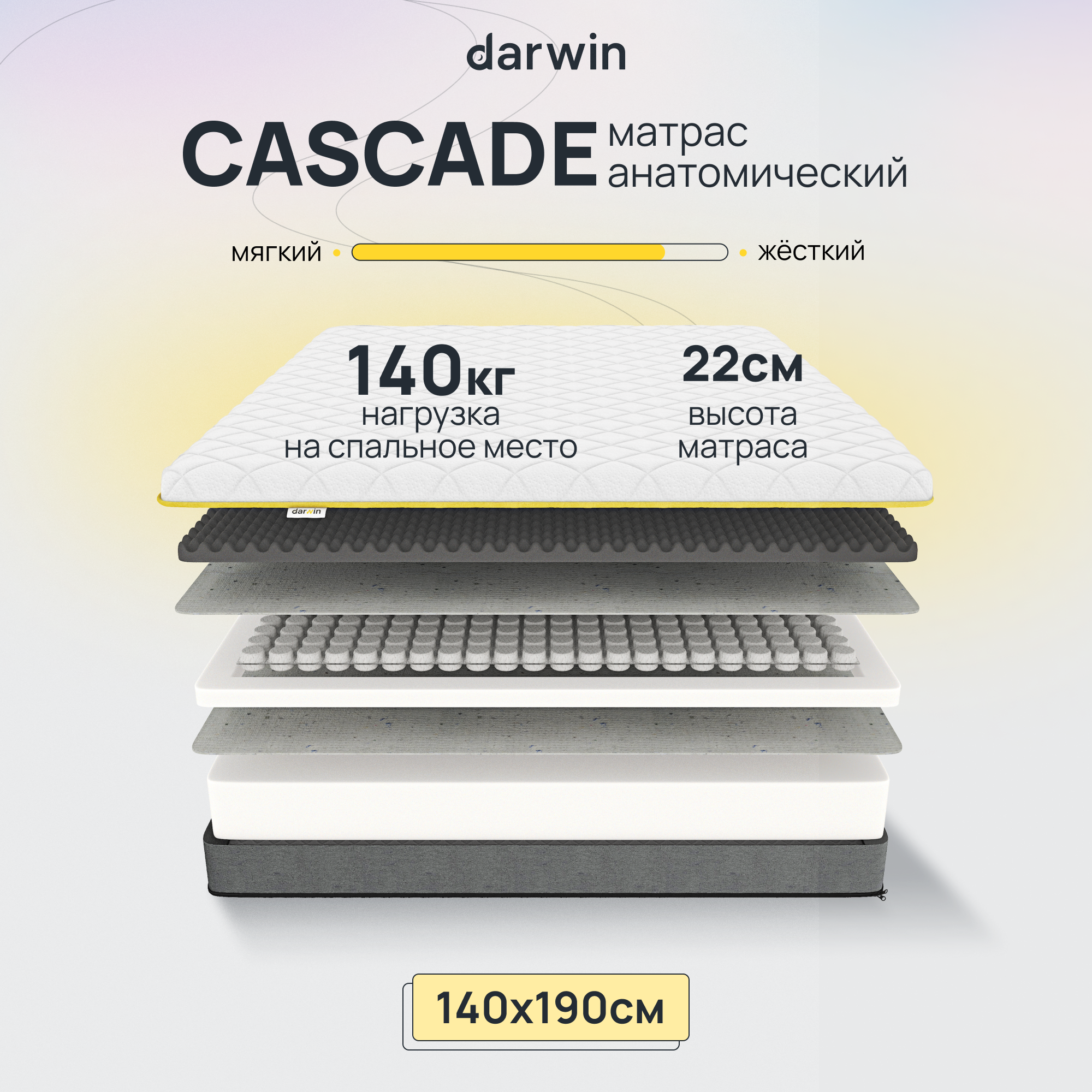 Матрасы Пружинный матрас Darwin Cascade 140x190, анатомический, независимые пружины, высота 22 см