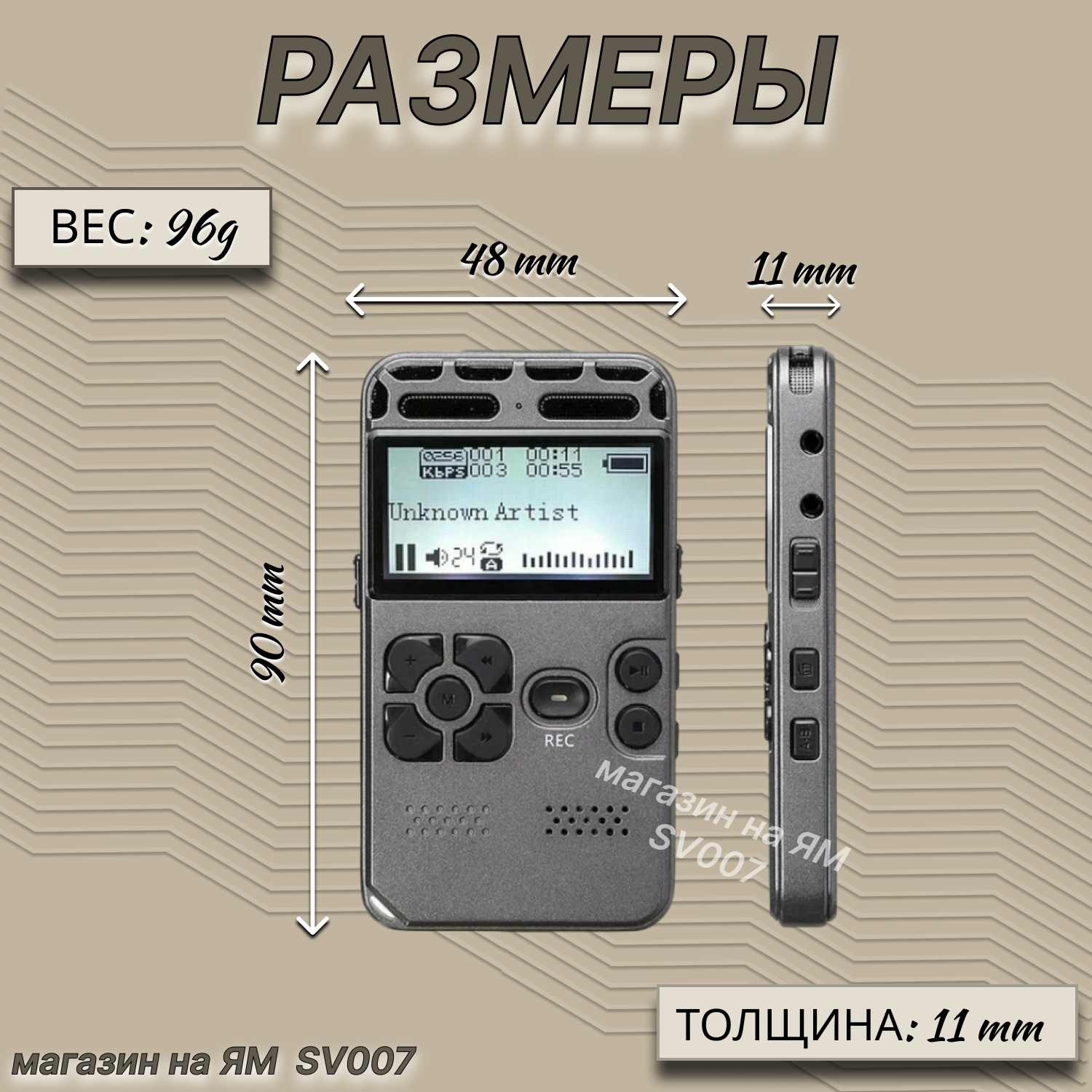 Диктофоны и рекордеры Цифровой диктофон с дисплеем RW-097, непрерывно записывает до 32 часов, MP3 плеер, таймер, запись по датчику звука
