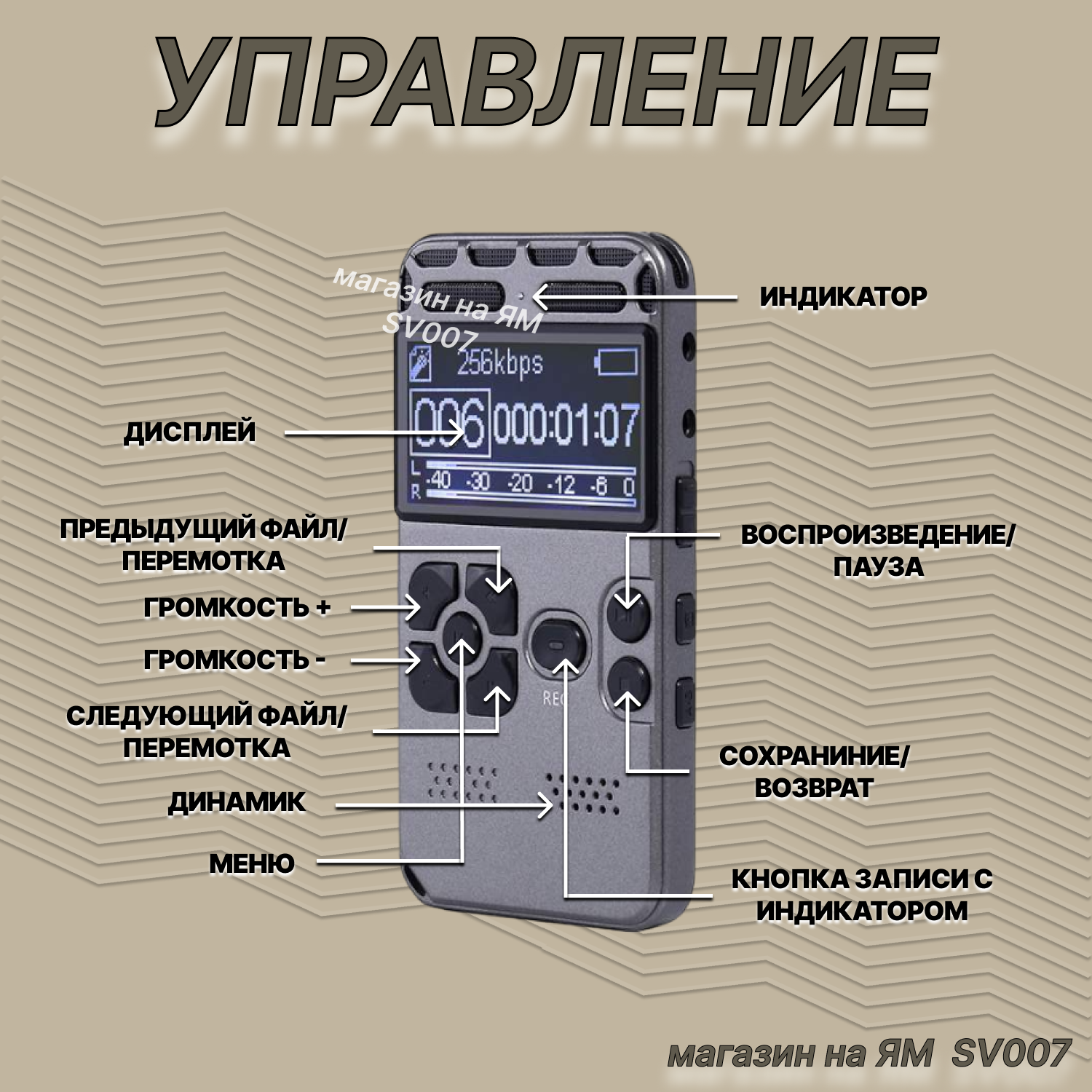 | Функции и возможности | изменение чувствительности микрофона / изменение качества записи / голосовая активация записи / метки записи |