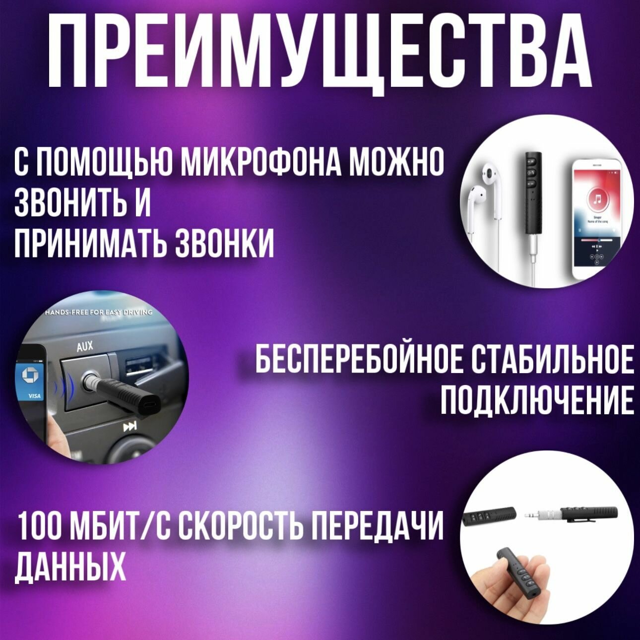 Аудиоресиверы Bluetooth AUX Адаптер / Блютуз ресивер AUX / Аудиоресивер автомобильный
