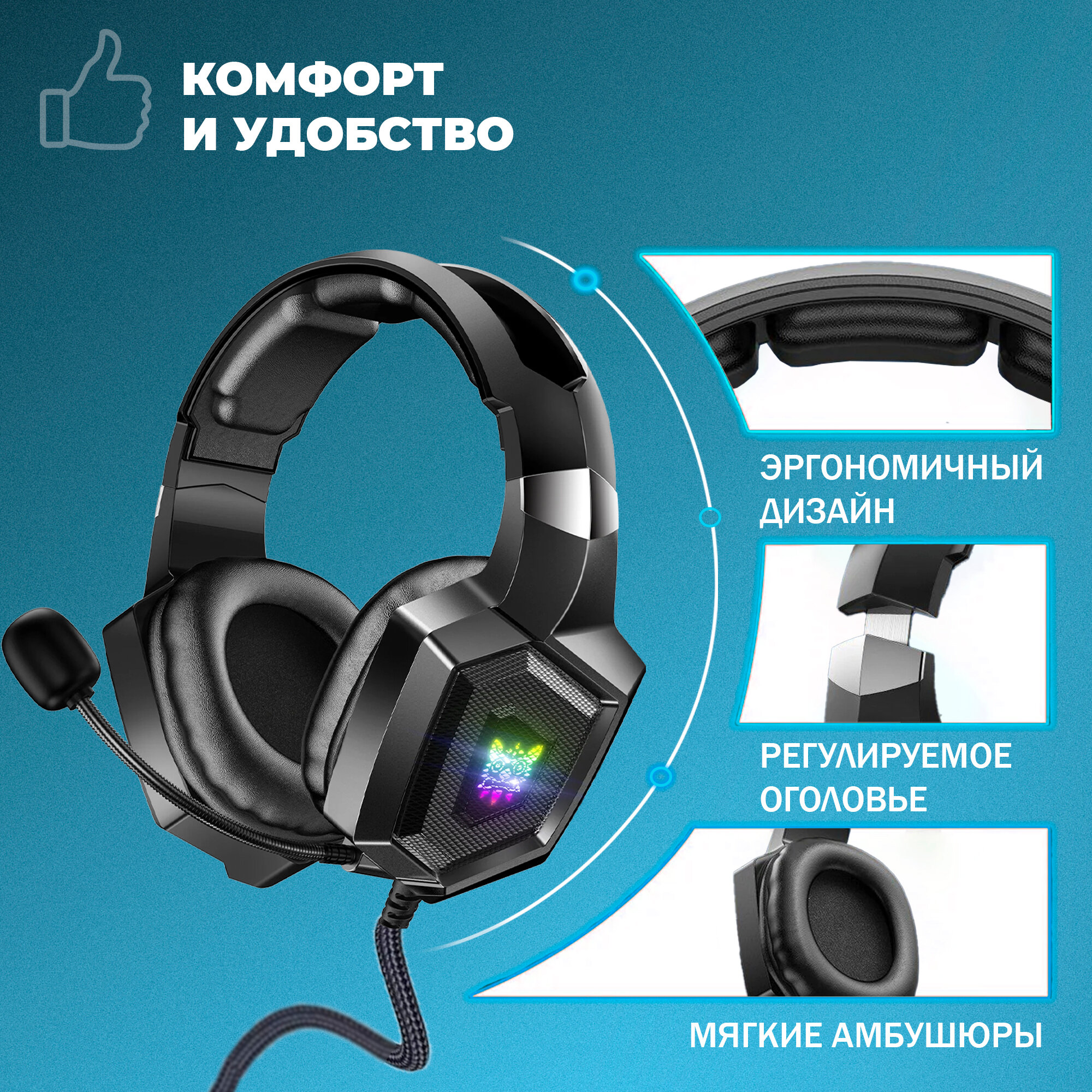 Наушники Игровые проводные наушники Onikuma K8 с RGB подсветкой, черные