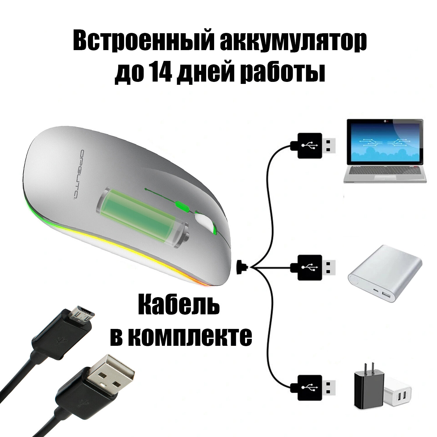 Мышка Мышь беспроводная бесшумная с подсветкой 2 в 1 Орбита OT-PCM66 Серая