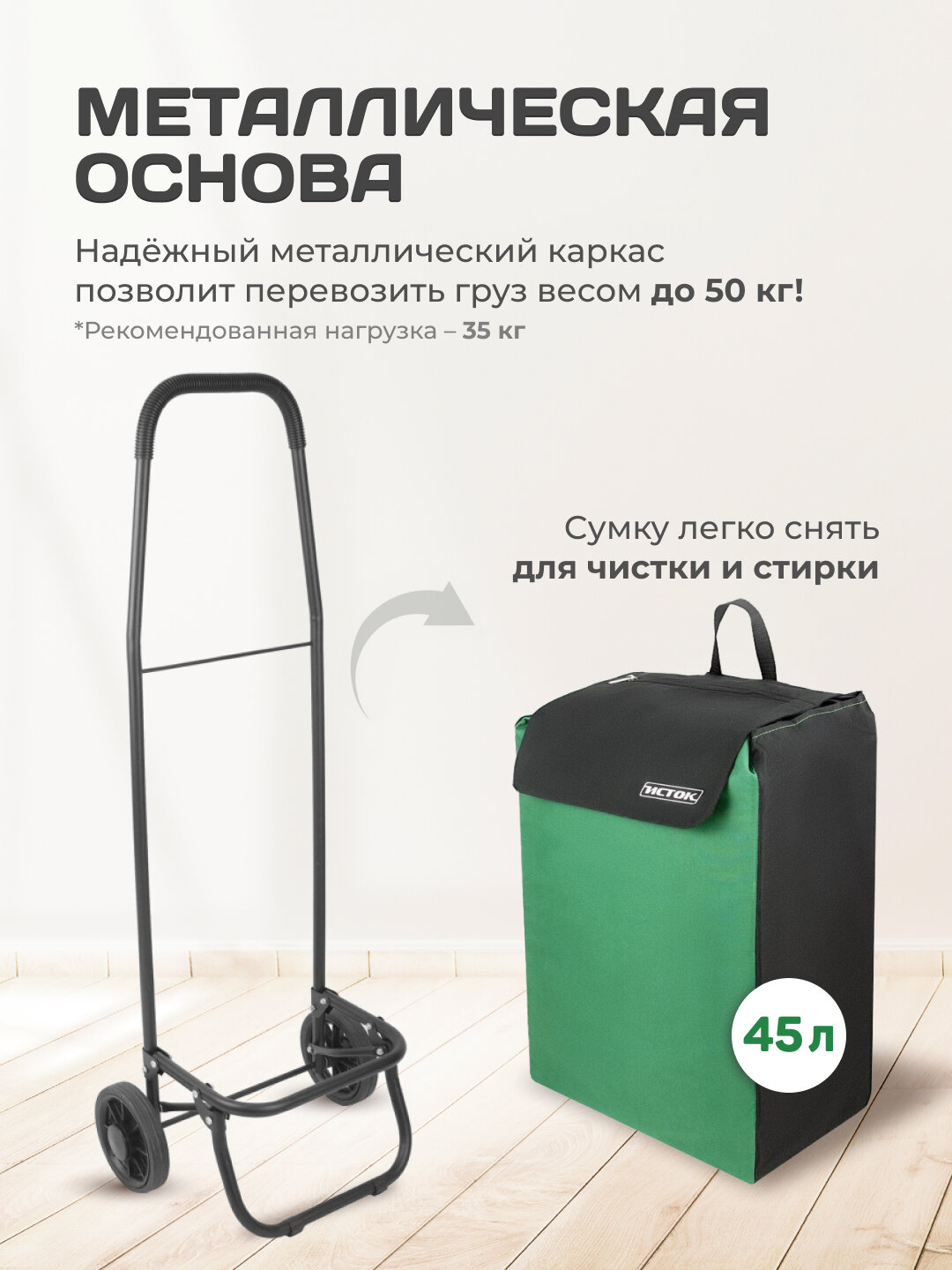 Сумка-тележка исток СТМ12 Спутник 1 Макси до 45 кг, черный/зеленый 3 158 ₽ Подробнее