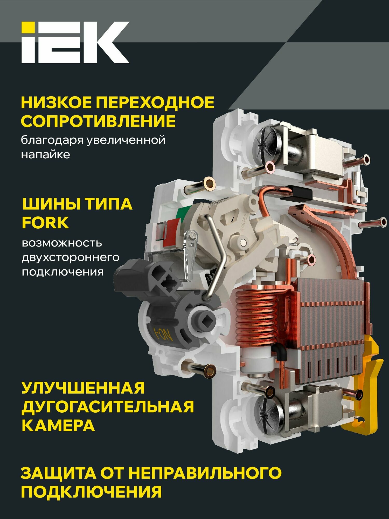 Автоматический выключатель IEK 3P 50А характеристика C 6кА ВА47-60M 3Р 50А 6кА С