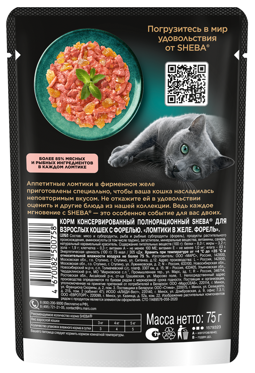 Sheba Влажный корм для кошек (паучи) CRAFT COLLECTION «Рубленые кусочки. Говядина в соусе» 1023150310244558 0,075 кг 51112 (18 шт)