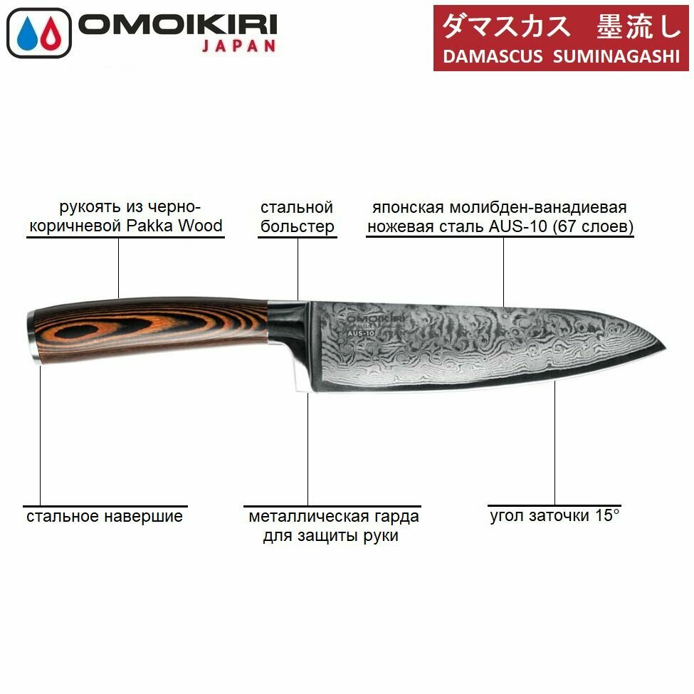Кухонный нож Нож универсальный Damascus Suminagashi, 127 мм