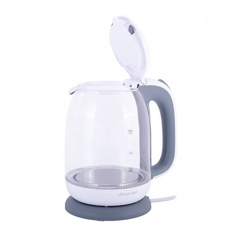Чайник электрический 1,7 л. стеклянный Kamille KM 1720G (1,7 л. / белый/серый)