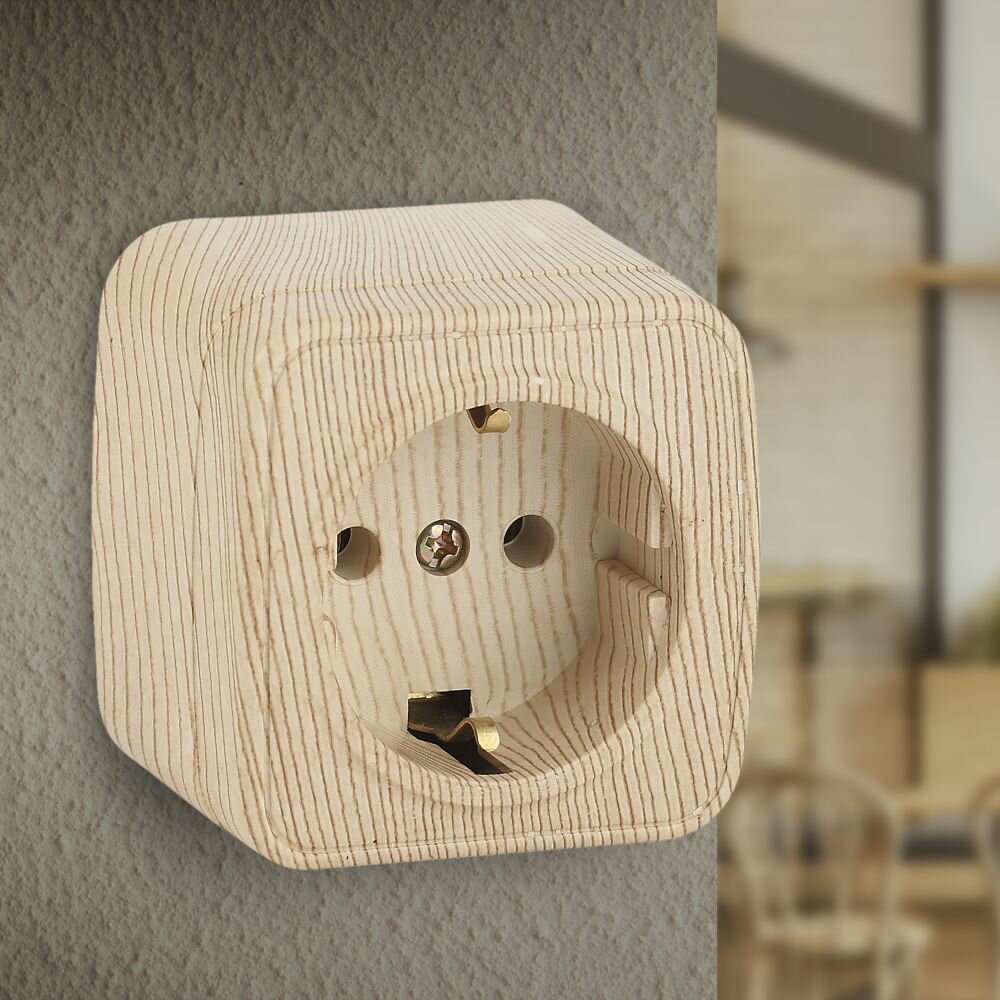 Розетка Розетка Intro Polo 3-202-11 с заземлением открытой установки 16А 250В сосна