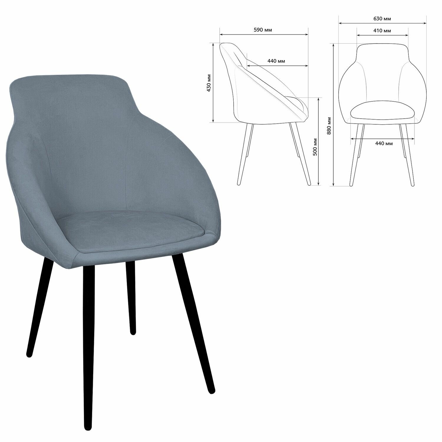 Стул Acqua для кухни гостинной офиса дома дачи балкона столовой, велюр серый, каркас усиленный металлический черный, Brabix Cf-079, 532778