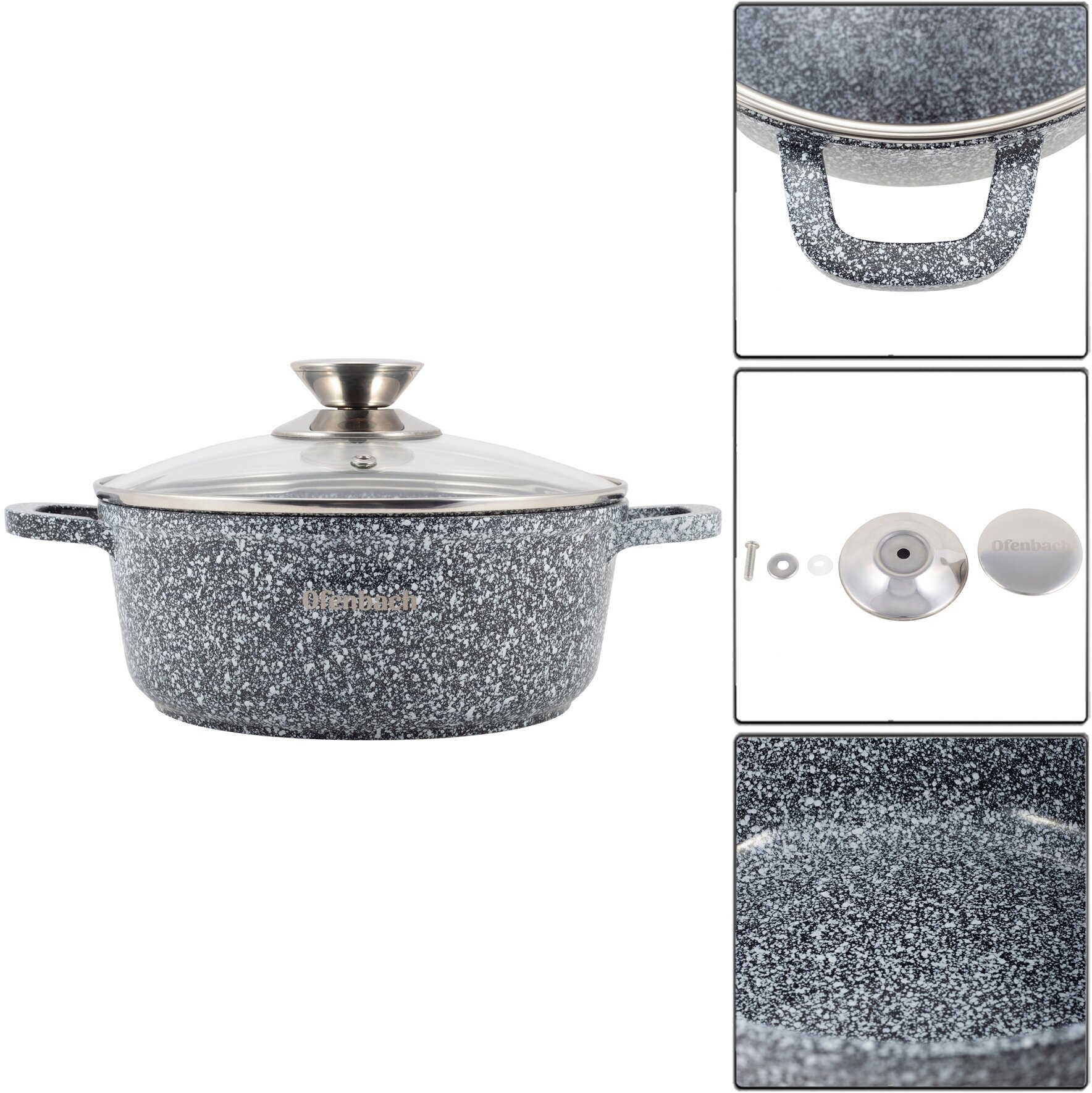 Кастрюля 6,5 л. из литого алюминия Ofenbach NB 100502 с мраморным антипригарным покрытием (6,5 л. / серый)