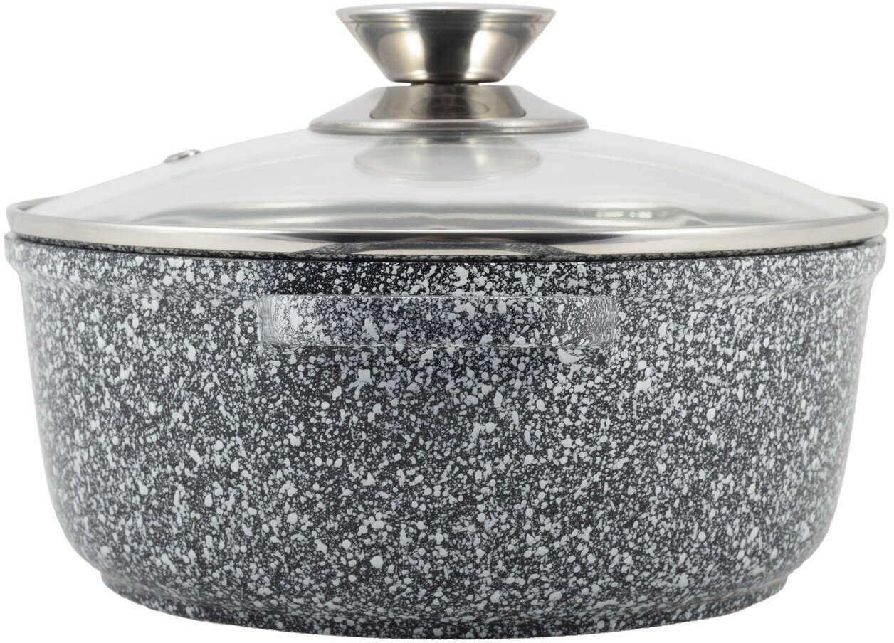 Кастрюля 28*20cm из литого алюминия с антипригарным покрытием "Snow marble" и стеклянной крышкой (ар