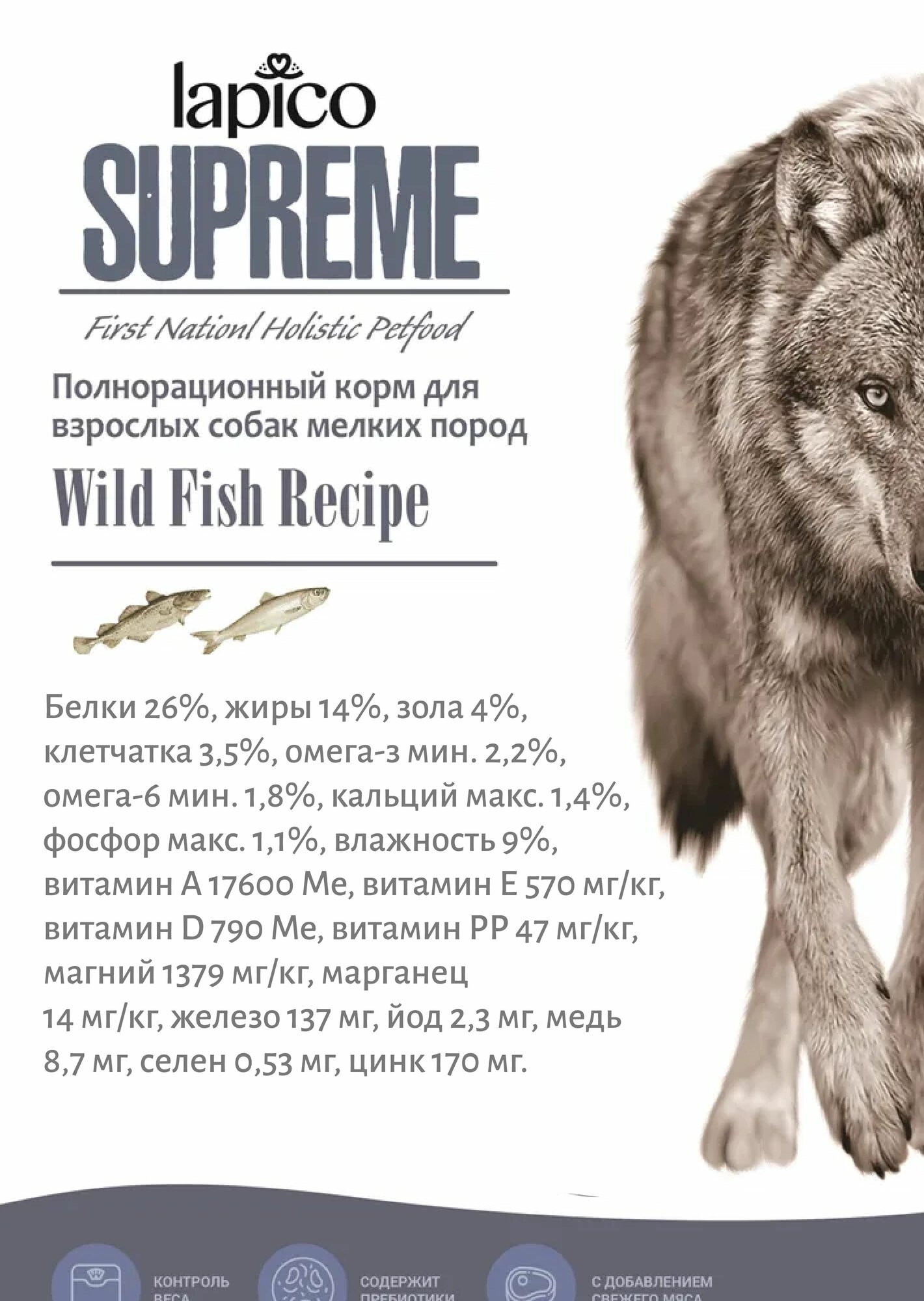 Корм сухой "Lapico" Supreme (Лапико) для собак мелких пород, рыба, 2кг, содержание рыбы 35,3%