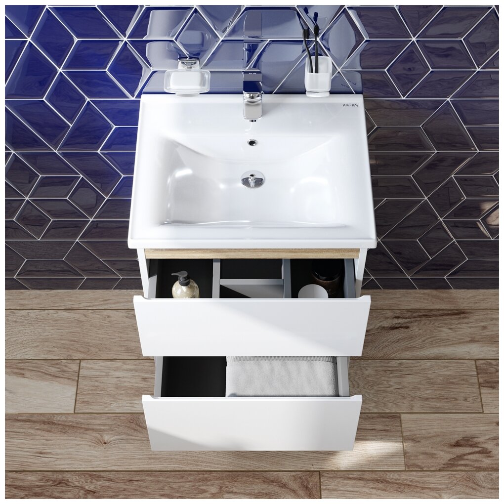 Тумбы под умывальник Тумба с раковиной AM.PM X-Joy подвесная, 55 см, 2 ящика, эмаль, белый глянец