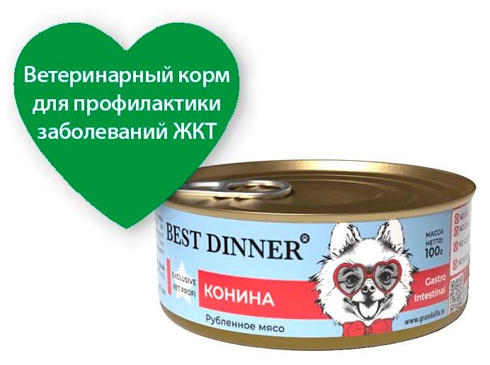 Корм консервированный Best Dinner Vet Profi Gastro Intestinal для собак с Конина, 12 ш 100 г