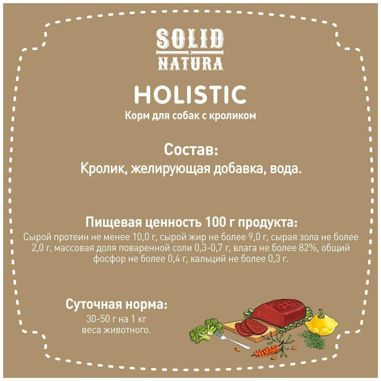 Влажный корм для собак, Solid Natura Holistic, кролик, упаковка 6 шт х 340 г