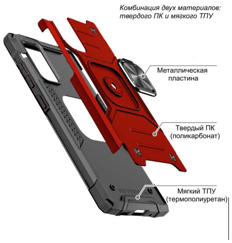 Противоударный чехол для Xiaomi Redmi Note 10 Pro черный с пластиной для магнитного автодержателя и кольцом подставкой