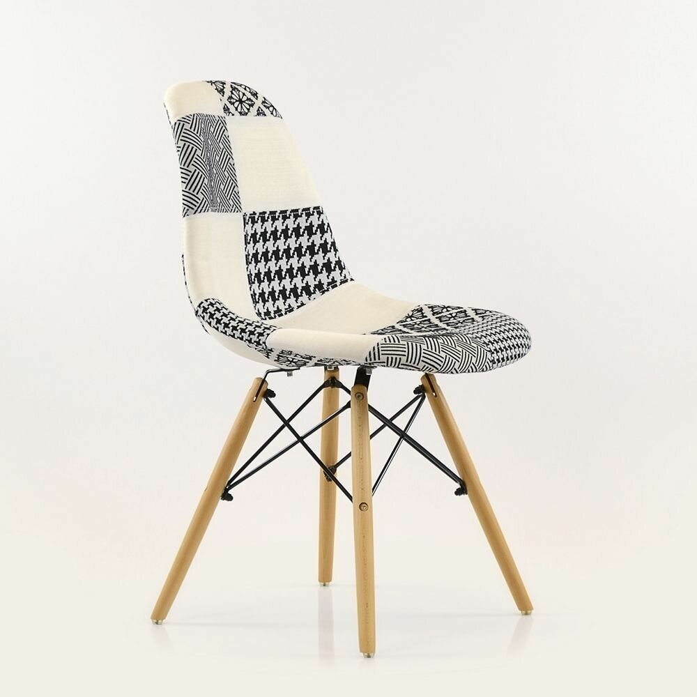 Стул Стул Eames Style Patchwork STOOL MARKET черный, белый; ткань, дерево; твердое сиденье; без подлокотников