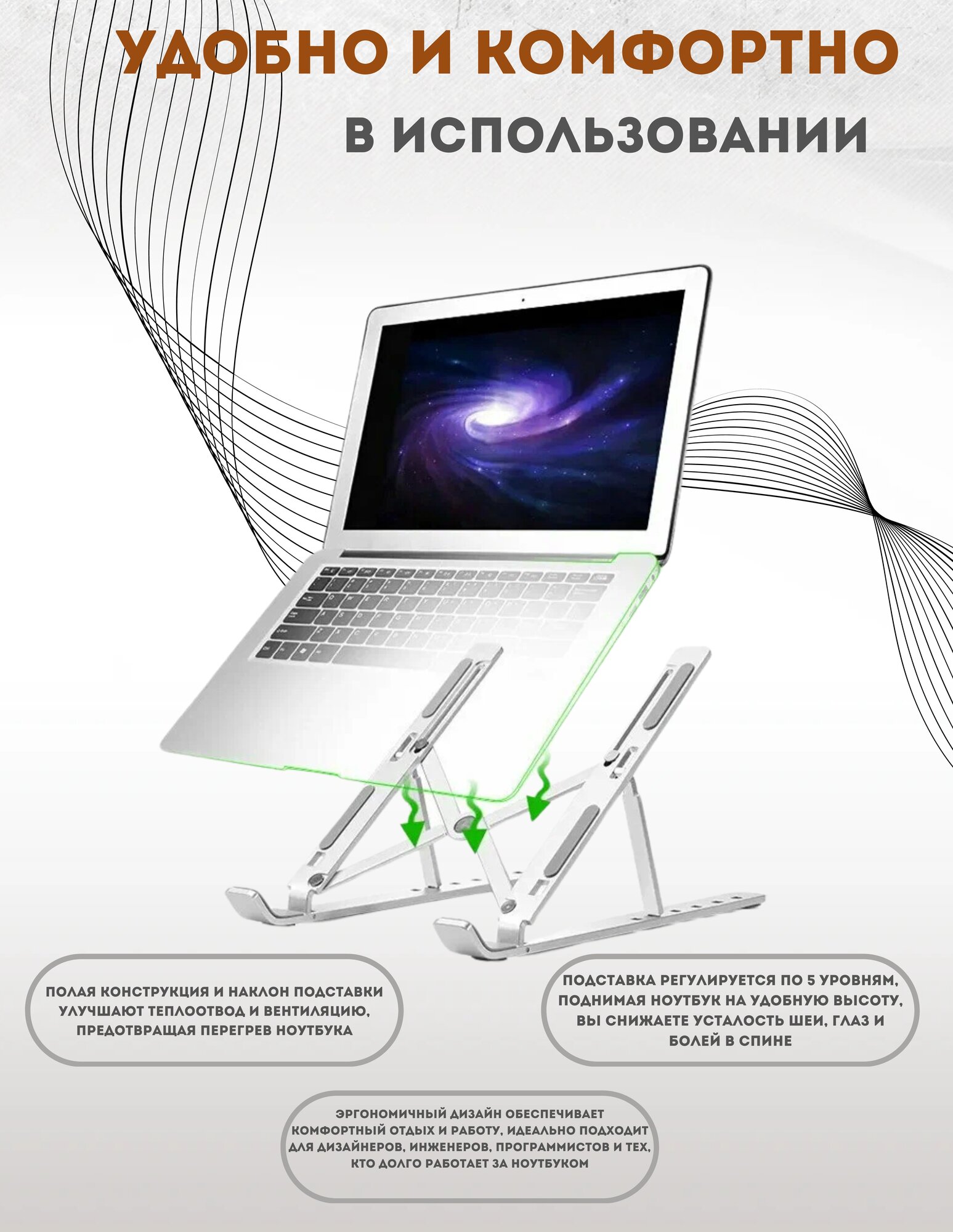 Подставки для ноутбуков Подставка для ноутбуков и планшетов с регулируемой высотой, серебристая