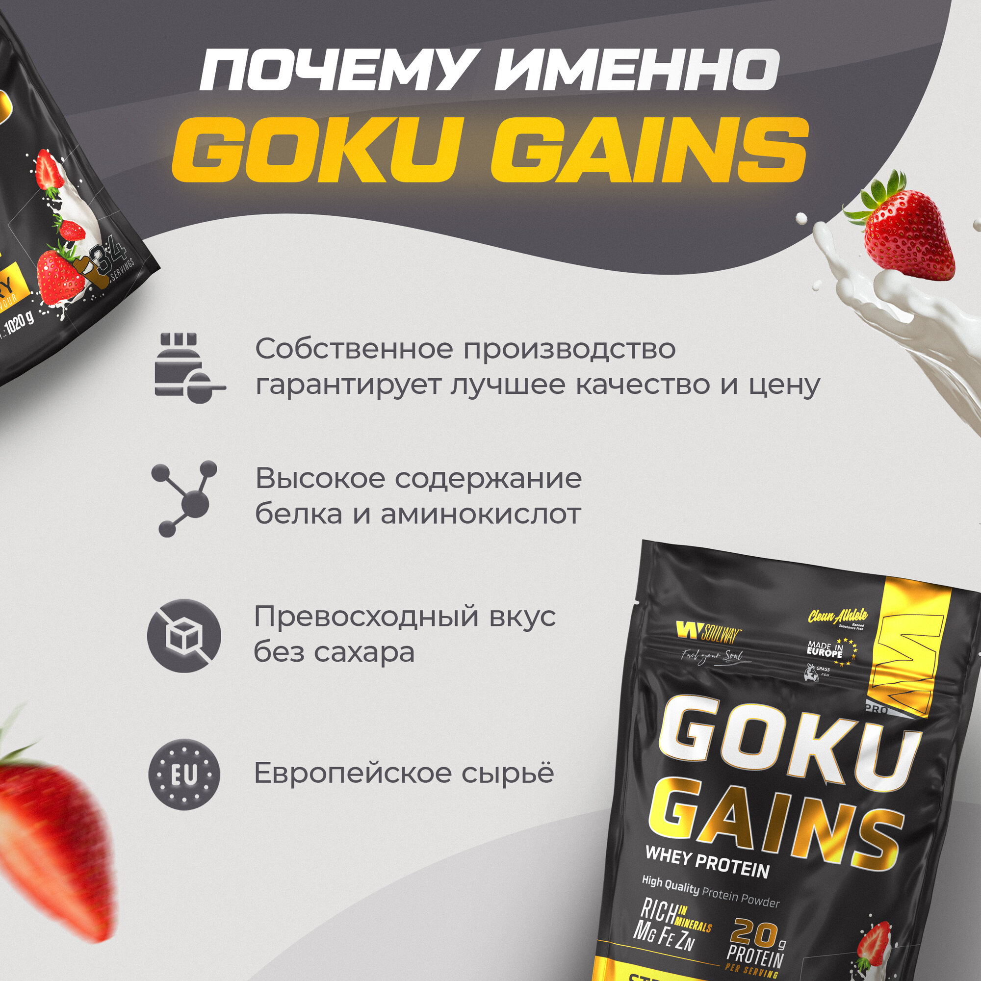 Протеины Протеин сывороточный Soul Way, протеин клубничный / 1020 гр 34 порций