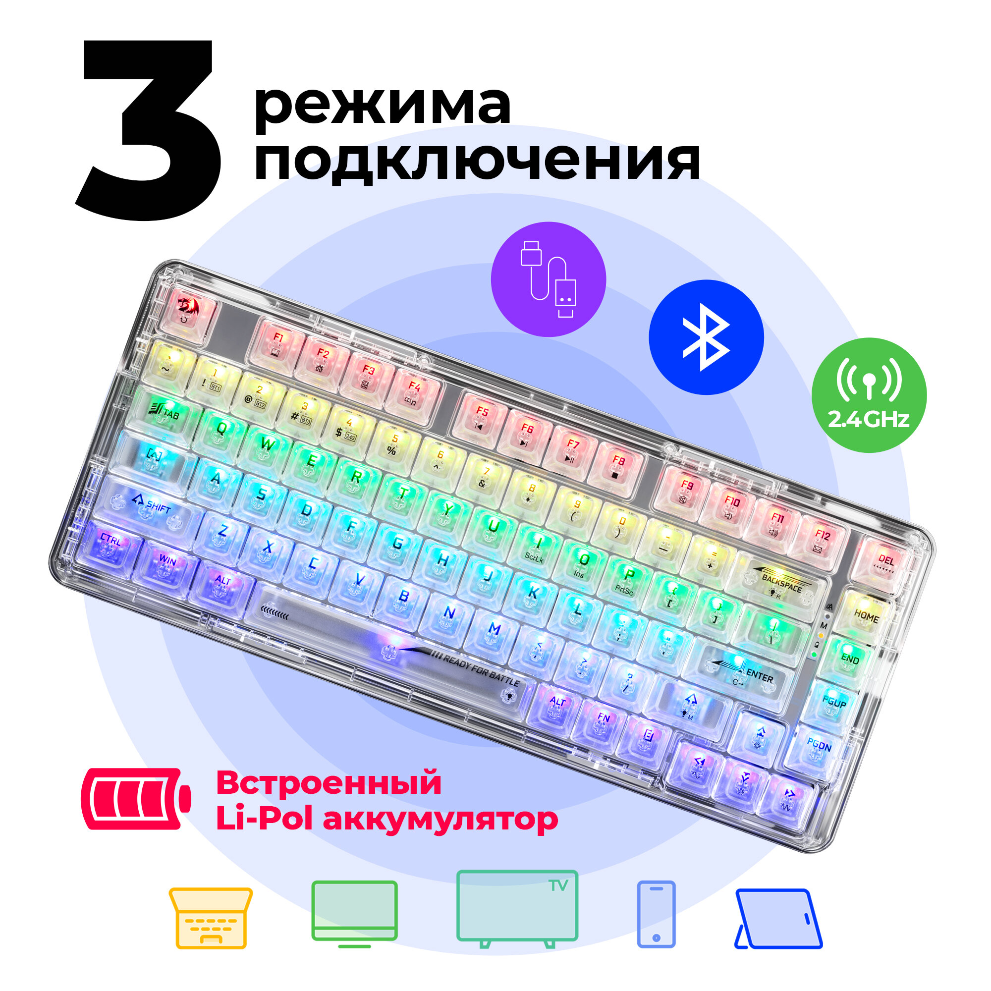 Механическая игровая клавиатура для компьютера Redragon Ryze RGB (65%) 3 805 ₽ Подробнее