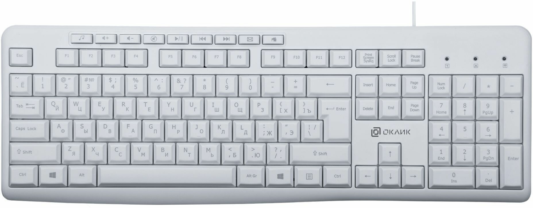 Клавиатуры Клавиатура для компьютера Оклик 305M проводная, мембранная, белая