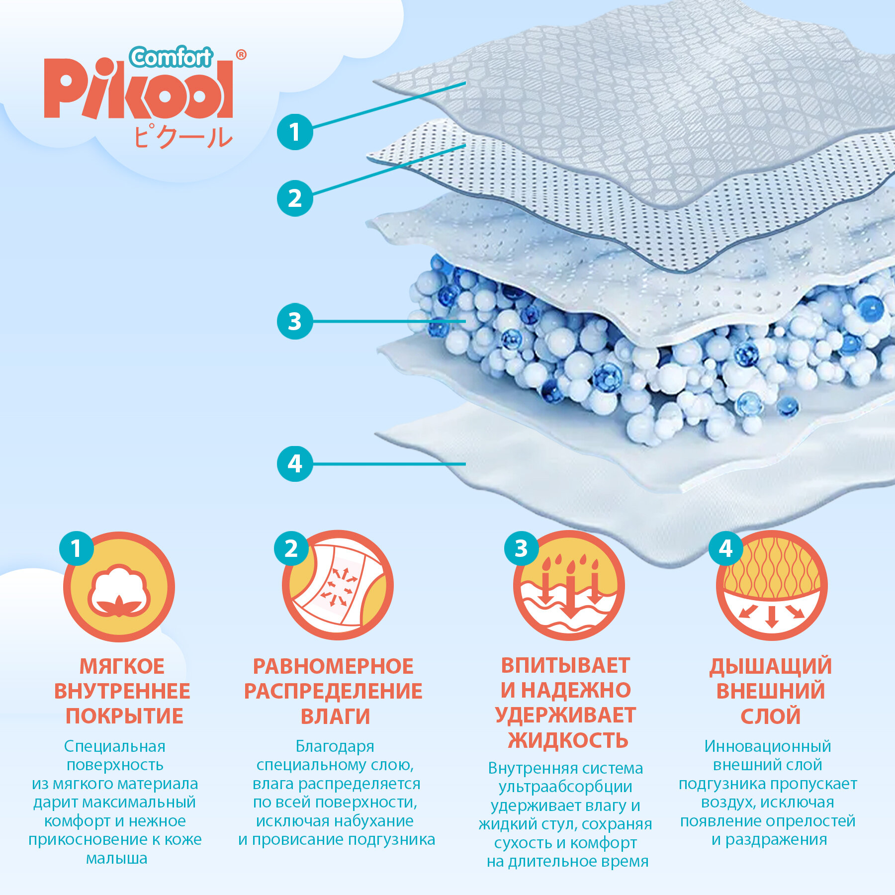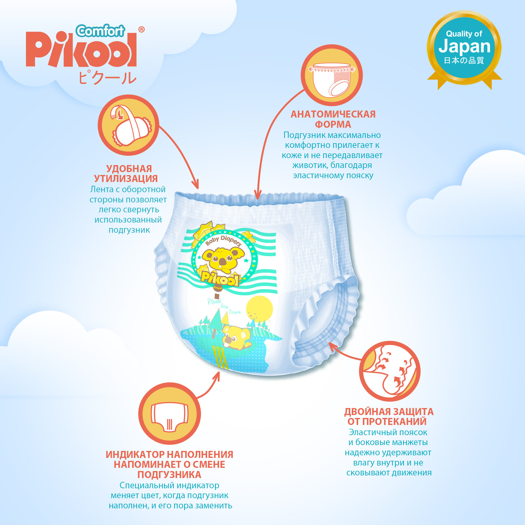 Pikool подгузники-трусики Comfort, М , 8-13кг, 64 шт., белый