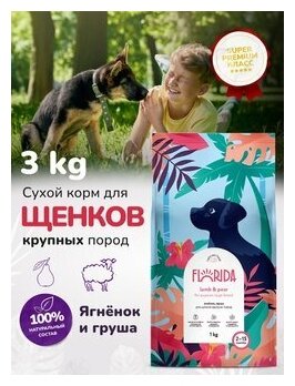 FLORIDA Сухой корм для щенков крупных пород с ягненком и грушей 1 уп. х 1 шт. х 3 кг