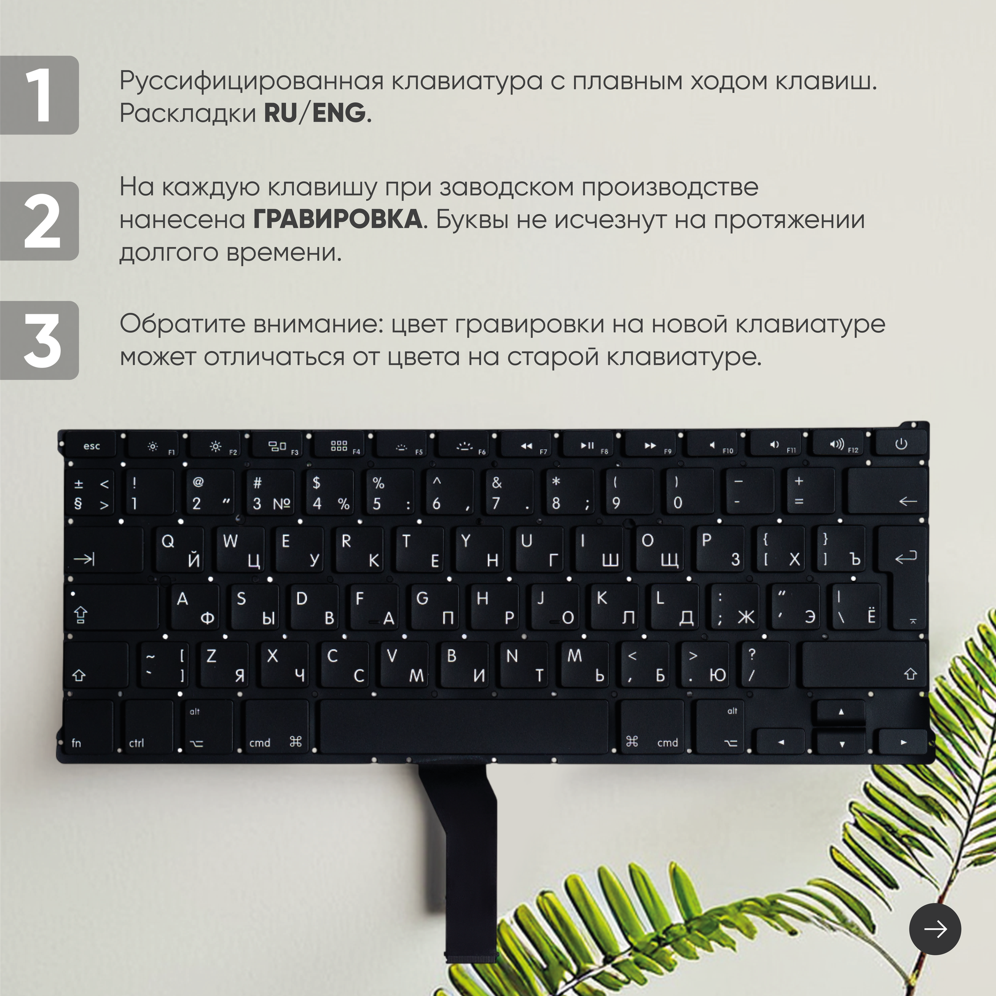 Ноутбуки Клавиатура (keyboard) MC965 MC966 для ноутбука Apple MacBook Air 13 A1369 A1466, Mid 2011 - Early 2017, с подсветкой, большой Enter RU, черная