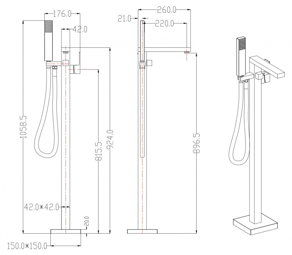 Смеситель напольный для ванной Groсenberg GB800BL (цвет черный)