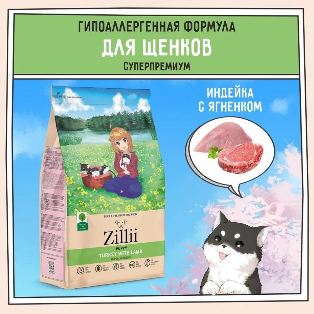 Корм для собак ZILLII Puppy Сухой корм для щенков Индейка с Ягнёнком 3кг