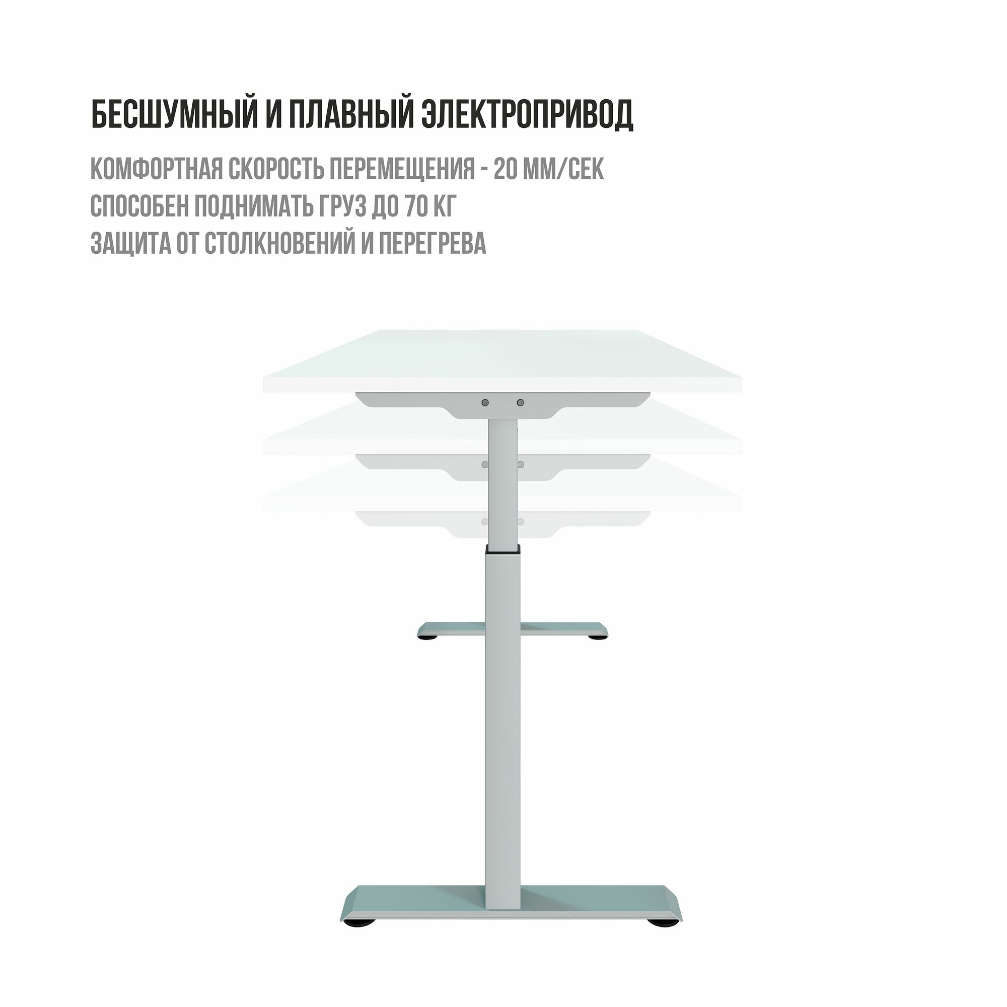 Офисные столы Стол компьютерный, письменный регулируемый по высоте Ergostol Start 2.0, 140х70 см, Белый шагрень/серебристый
