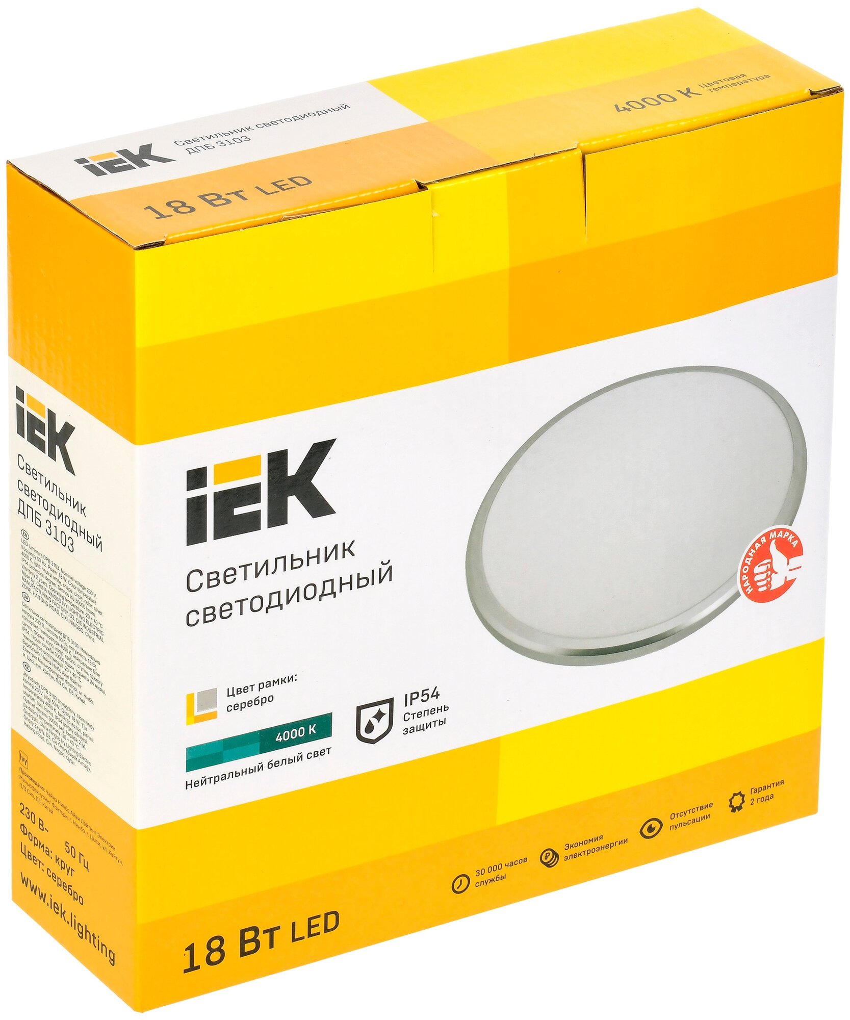 Светильник светодиодный ДПБ 3103 18Вт IP54 4000K круг серебро LDPB0-3103-18-4000-K01 IEK