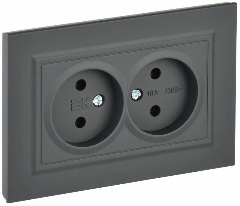 Розетки Розетка 2-м СП BRITE РС12-2-БрГ 10А в сборе без заземл. без защ. шторок графит IEK BR-R20-10-K53-F