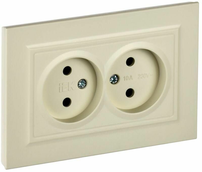 Розетки Розетка 2-м СП BRITE РС12-2-БрКр 10А в сборе без заземл. без защ. шторок беж. IEK BR-R20-10-K10-F