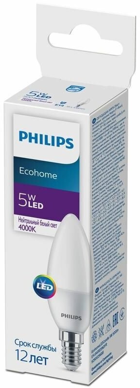 Лампочки Лампа светодиодная E14/4000/05 (PHILIPS EcohomeLEDCandle 840B35NDFR)