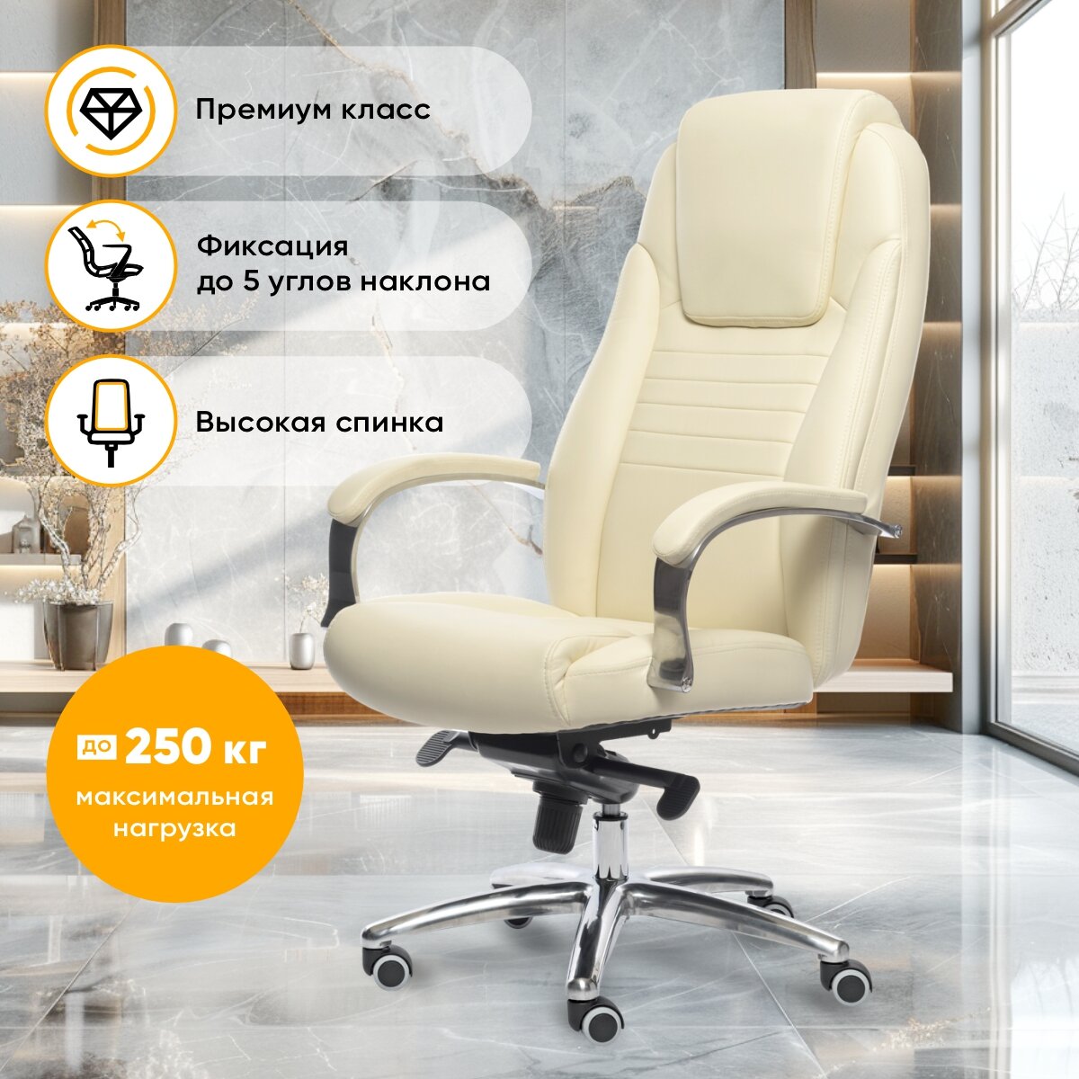Компьютерные кресла Кресло компьютерное офисное Т-9923 для руководителя, обивка: искусственная кожа, цвет: слоновая кость