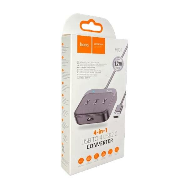 Картридеры и USB-хабы USB-концентратор HOCO HB31, Easy, 4 гнезда, кабель 1.2м, цвет: чёрный