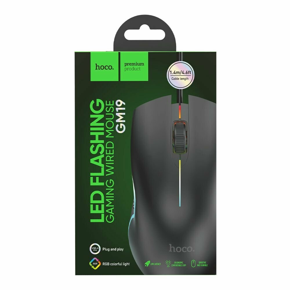Мышки Мышь игровая проводная HOCO GM19 Enjoy USB, 1000dpi, RGB, 1.4м (черный)
